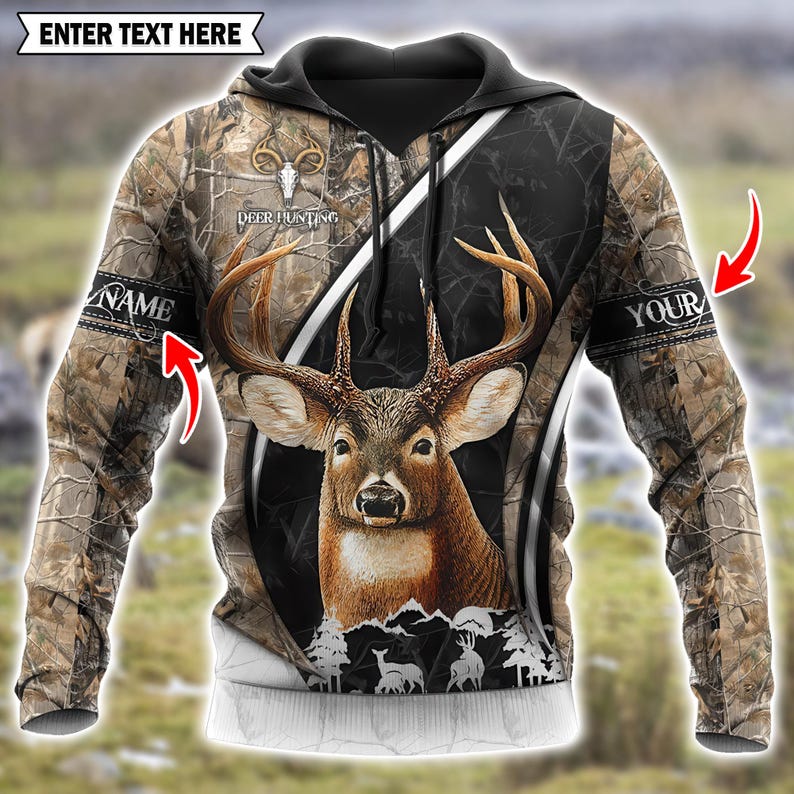 Custom Deer Hunting Hoodie – 3D All Over Printed Pullover with Personalized Name, Outdoor Camo Apparel for Hunters